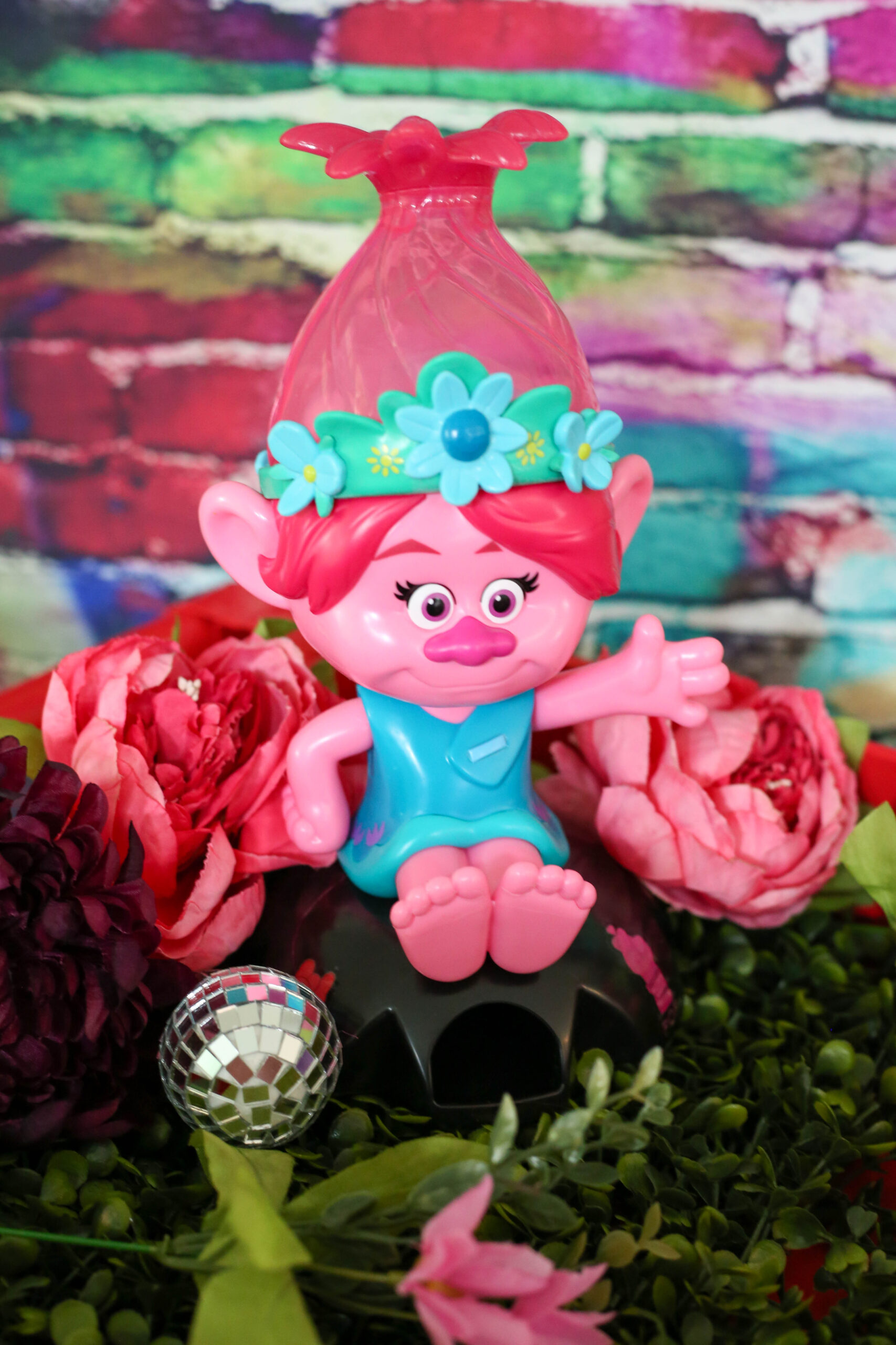 Barb and Poppy sit atop light up wands that play fun music with the touch of a button. They’re also filled with candy!