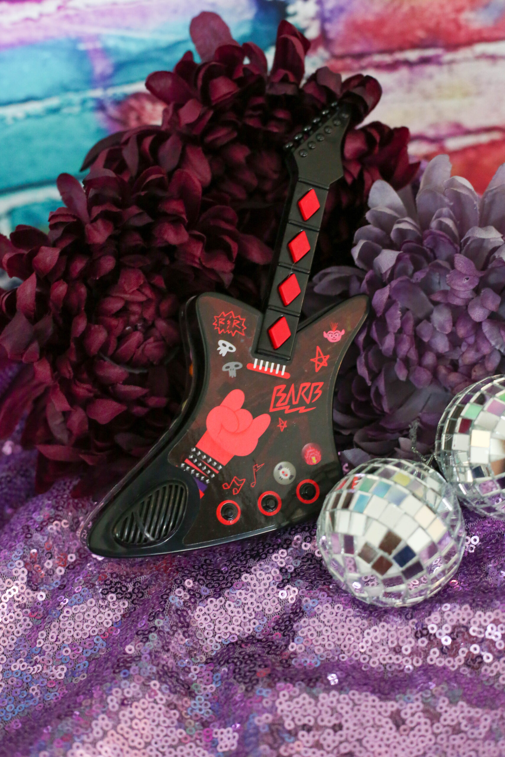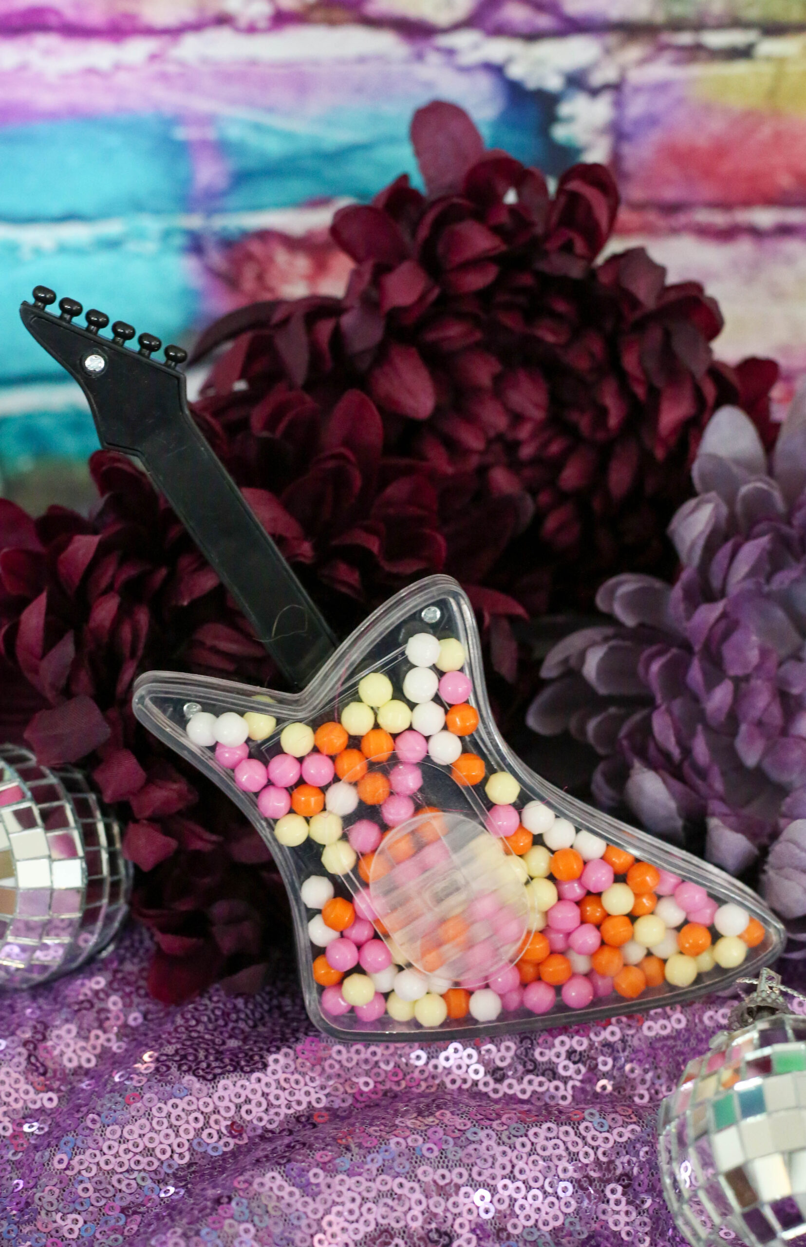 Other fun candy novelties offered to coordinate with the theme of the Trolls World Tour movie are these candy filled guitars. Poppy’s guitar is pink and has a floral design on the front, while Barb’s rock guitar is black and red with rock imagery. It’s also filled with tasty CandyRific candy! Each guitar plays multiple tunes, and the sound is fantastic!